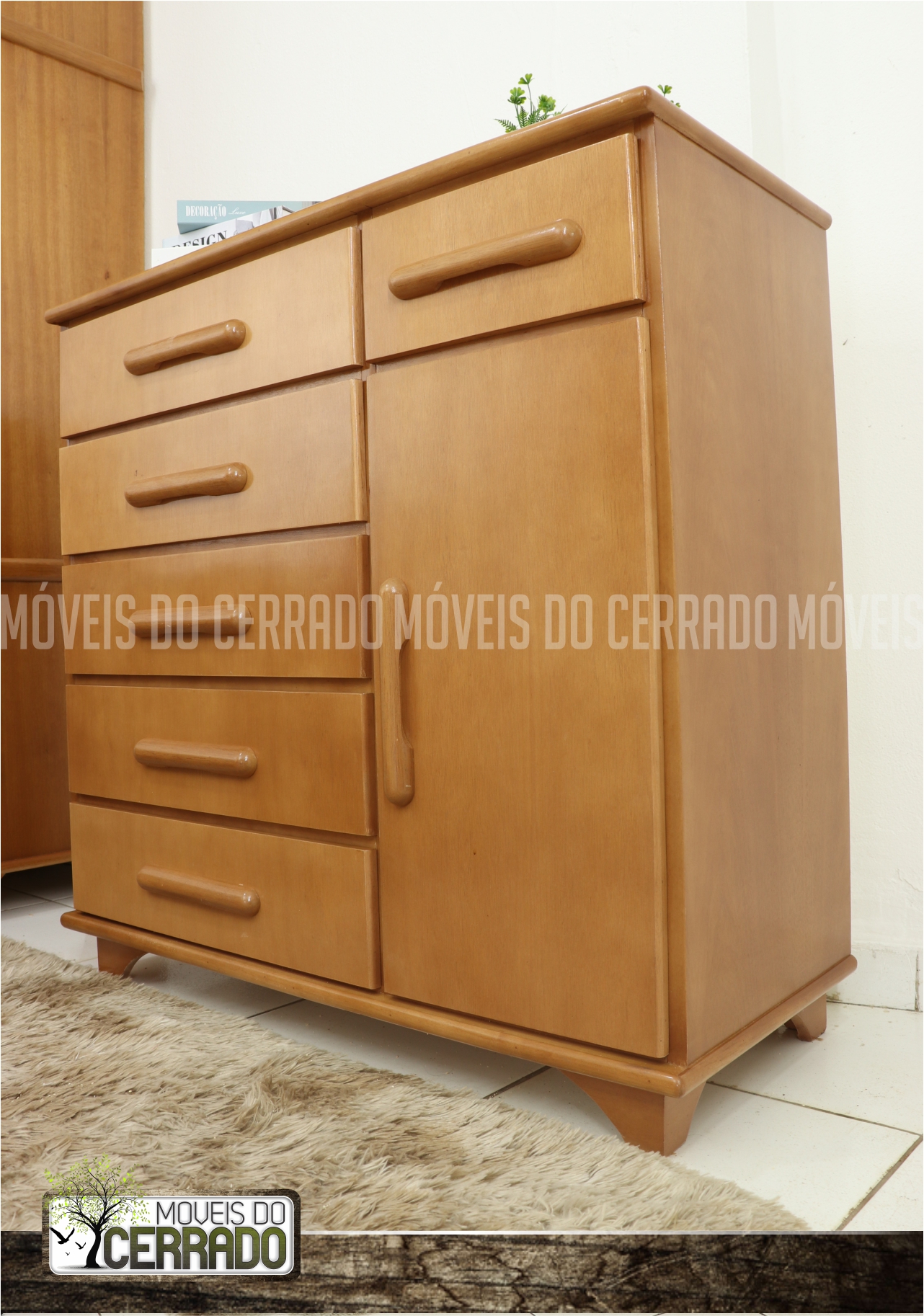 Cômoda de Madeira 05 Gavetas 01 Gavetinha e 0 Sapateira puxador Pão